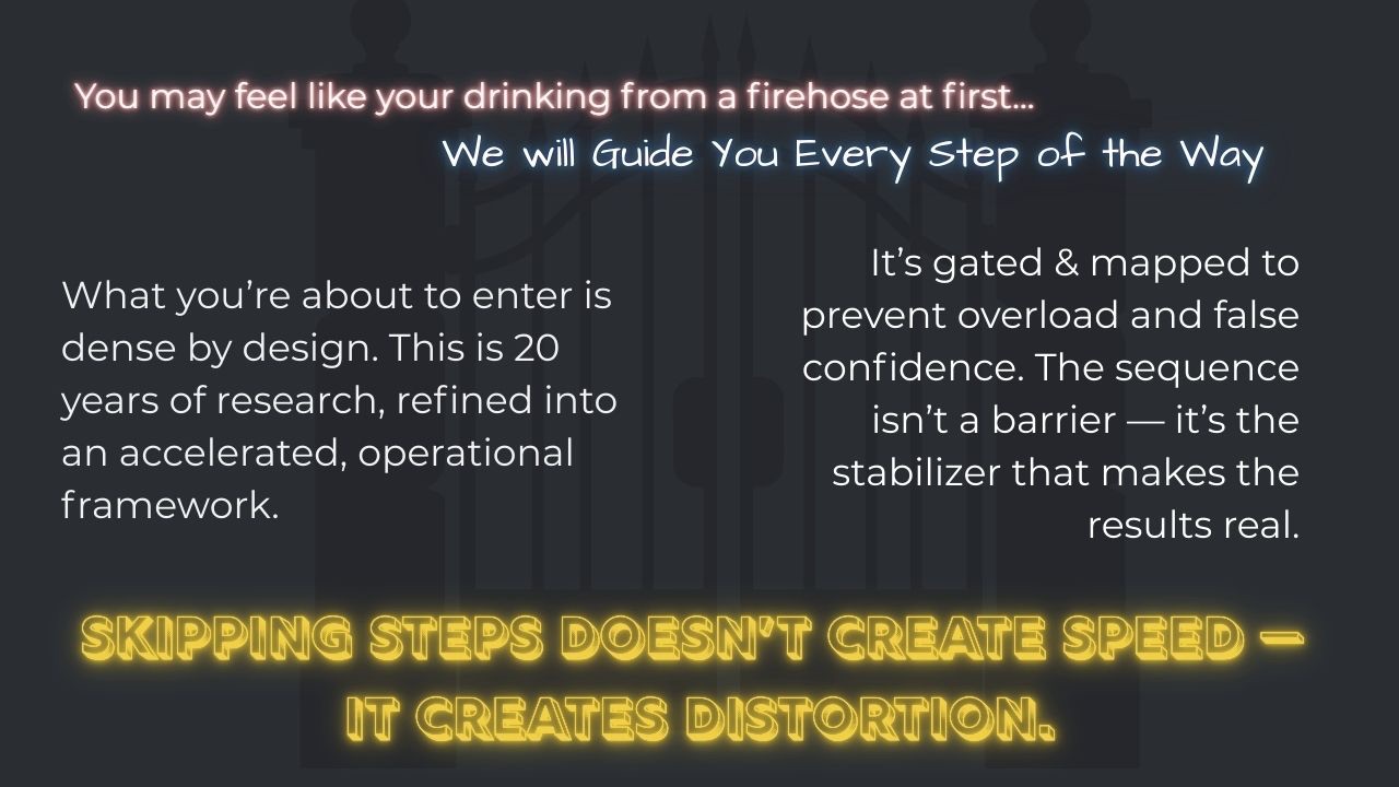 This is your System Training Arc™. Not every gate will open on your Day One entry. Each phase and product unlocks in a deliberate sequence based on the success patterns of operators who’ve come before you. This progression is designed to protect your stability, build true mastery, and ensure real momentum. Follow the arc in order — completing one clearance opens the next and strengthens the foundation required for the phases ahead.